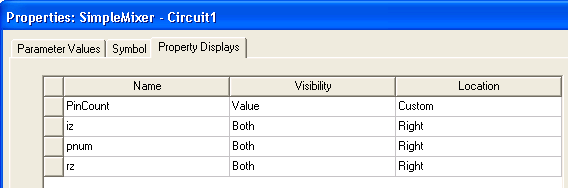 Click OK to close this dialog. 32. Right-click on Port 2 in the schematic, and select Edit Port. Select Microwave port for the symbol type, then click OK. 33. Optional: To relocate the Port 2 property displays as we have done, right-click the symbol and select Properties from the menu. In the Properties window, select the Property Displays tab. On the properties iz, pnum, and rz, use the Location pulldown to select Right as shown below, then click OK to close this dialog.
