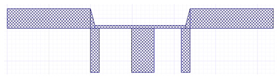 The fill pattern within the objects may be different. 7. Copy and paste the elements: a. Select the polygon, first rectangle, and second rectangle by pressing and holding CTRL while clicking the three objects in turn. b. Next, copy the selected objects by pressing CTRL+C. Then click in the Layout window and press CTRL+V to paste the objects into the layout, as shown.