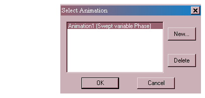 2. Click New because you will view an animation of a varying frequency against a fixed input phase of 0 degrees. The Setup Animation window appears: