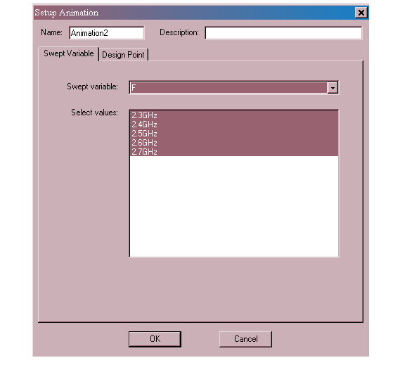 3. Accept the default name and change the swept variable to “F”. 4. Click OK and the animation begins. 5. Click Close when finished. 6. Save the project and exit Designer. HFSS视频教程 ADS视频教程 CST视频教程 Ansoft Designer 中文教程 |
