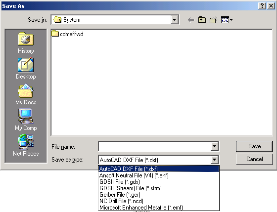 To export layout data: 1. On the Layout menu, click Export File, this opens the Save As dialog. 2. Select the file format you wish to use and click Save. ![]() If you choose Ansoft Neutral or Microsoft Enhanced the file is saved. If you choose a different format, one of the following dialogs opens: HFSS视频教程 ADS视频教程 CST视频教程 Ansoft Designer 中文教程 |