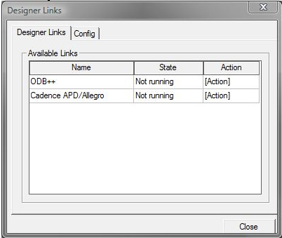 Importing and Exporting Data > Running AnsTranslator from Within DesignerThe ODB++ translator is a Designer Link to an external DLL that can be accessed through the Designer Links dialog by clicking Tools > Designer Links. ![]() If the ODB++ line is not present in the Designer Links tab, select the Config tab to load the ODBLinks DLL and enable it (ODBLinks.dll). For more information, see Designer Links.