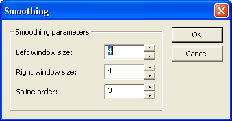 Network Data Explorer > SmoothingThe data smoothing dialog is accessed via the Smooth All Frequencies option on the Edit menu. ![]() A least-squares polynomial fit of the specified order is used to interpolate new data points for the magnitude and phase components of the S-parameters. Left window size and Right window size control the number of data values collected on either side of the point to be interpolated — please note that these are point counts and not distances. Spline order can not exceed the total number of points sampled (i.e. the sum of the two window sizes).