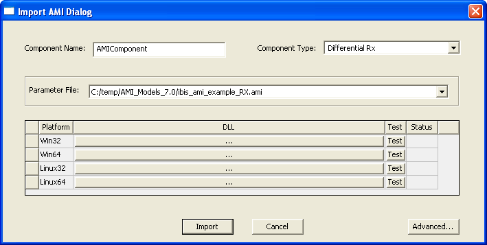Select the library file, and click Open. On the Import AMI Dialog, click the Advanced button to open the Advanced AMI Import Dialog: