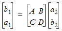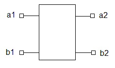 2. Nodes a1, a2, b1, and b2 are related by the ABCD parameters according to the following formula: