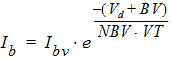 Model Notes1. The transit-time parameter, TT, can also be used to approximate the reverse-recovery time of a diode. 2. Diode breakdown can be modeled by specifying IBV and BV parameters. 3. The reverse-bias capacitance characteristics can be more accurately modeled than the common expression derived from PN junction theory. The capacitance grading coefficient exponent can be expressed as a polynomial function of voltage by specifying values for GC1, GC2, and GC3.