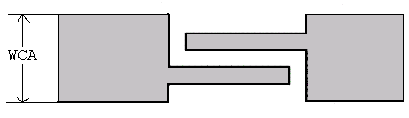 where FR4, the selected layout technology or substrate type, has a definition such as: .SUB FR4 MS( H=7.6200e-004 Er=4.4 TAND=0.02 TANM=0 Notes1. The feedline widths WF1 and WF2 must be less than or equal to the total width of the capacitor: WF1 <= WCA and WF2 <= WCA. 2. The finger width W and the spacing between adjacent fingers S are the same for all fingers. 3. The model takes into account the effect of the steps from the feedlines to the terminal strips. 4. The capacitor width WCA has a default value of (N*W + S*(N-1)). WCA can be set to a value larger than the default. An error results if WCA is set to less than the default.
