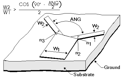 Where C0 is the speed of light in free space, Weff is the effective width of the microstrip, and Ereff is the effective dielectric constant. 2. For the angle ANG, (a) when W1eff < 2W2eff,