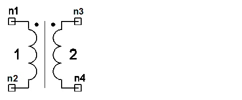 ![]() Netlist FormAn instance of a 1x1 transformer has the following Nexxim netlist syntax: Axxx n1 n2 n3 n4 N=val COMPONENT=transformer_1x1 n1 and n3 are the nodes connected to the input transformer. n2 and n4 are the nodes connected to the output transformer. The entry COMPONENT=transformer_1x1 identifies the element.