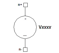 n+ is the positive node and n- is the negative node of the voltage source. Parameters in parentheses are positional. The first four parameters must be present in the order given.