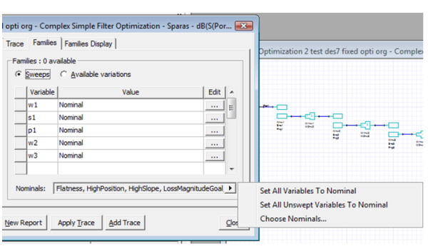 Fast Calculation-Update Reports When fast calculation-update is enabled, some reports will be automatically updated during the optimetrics analysis if you configure the following: 1. Set Dynamic report update frequency to 1 using Tools > Options > Circuit Options: ![]() 2. Set all variables to Nominal in the Report/Trace setup: ![]()