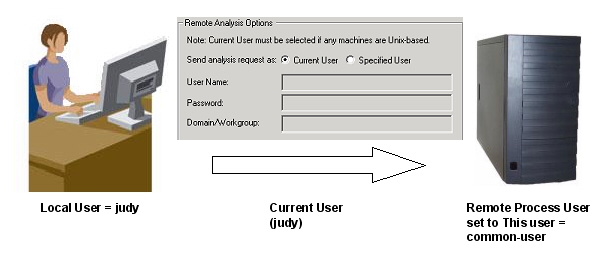 Remote Analysis > Common Windows Configuration 2All local machine users should solve as a common user on the remote machine (known as the remote process user). The user name and password for the remote process user need not be provided to each local machine user; it will only be stored on the remote machine.
