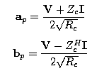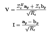 ![]() where Rc is the real part of characteristic impedance, Rc = Re (Zc) and where the superscript H denotes the Hermitian, or conjugate transpose. The inverse transformation of the power waves is: