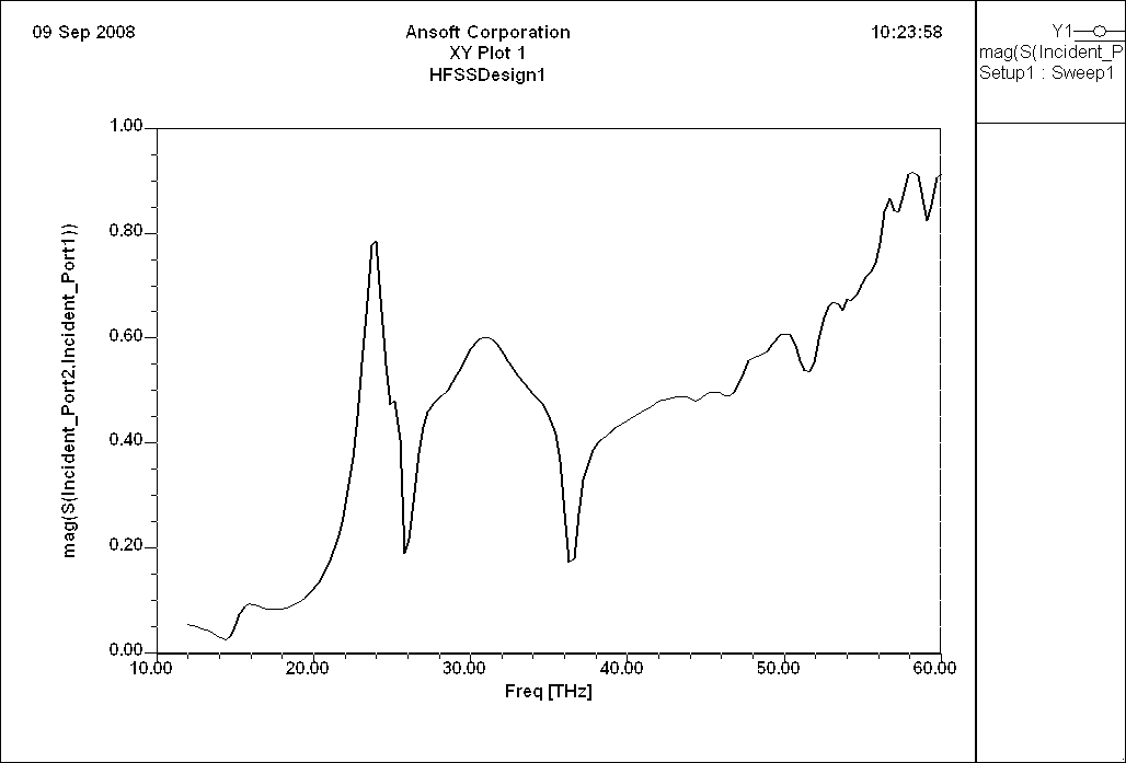 我用的pml层算的周期结构透过率,算得40THZ以后的结果很大,有的甚至超过1,实验结果很小,低频段的透过率曲线和实验结果近似相同,不知道是什么原因。