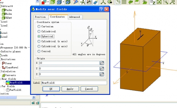 第三个问题,你想看近场的话,想看哪个平面就设置哪个平面就可以了,那个坐标系方便而已,只是要注意,它的近场不能跟网格点相交,否则会提示错误