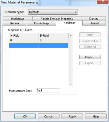 在设计极靴材料是要求选择非线性,设置非线性时导入B-H曲线,这个应该如何设置?求教各位了