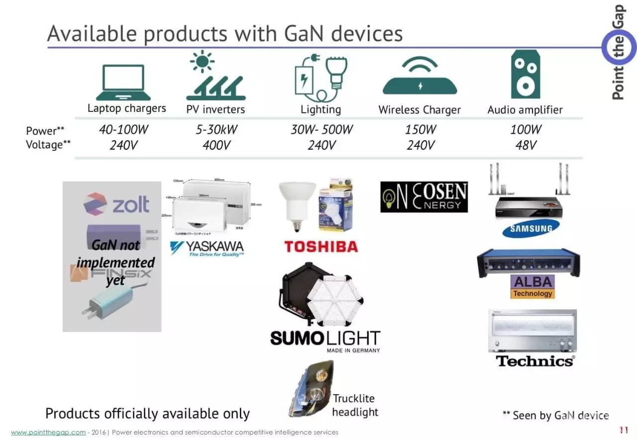 使用GaN功率器件的部分产品主要GaN器件厂商产品和能力