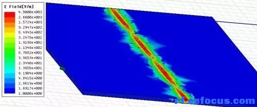 铜箔平面GND1 Polt fields为Mag_E,结果如图7所示: