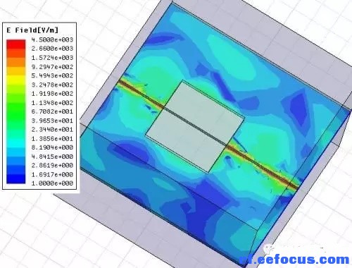 图20参考平面GND2开槽情况下GND2的电场分布图