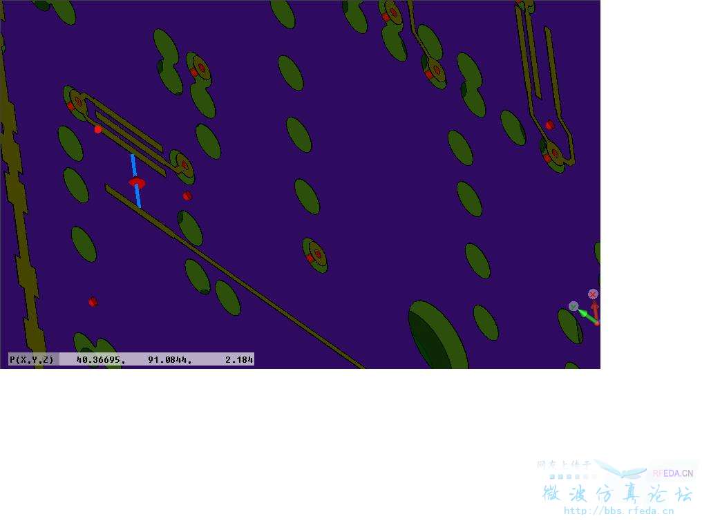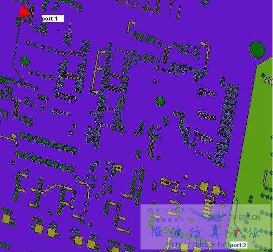 Hefang, you've asked me about the meaning of the purple and green solids, well, these represent the different layers. The purple one is the second layer, and I believe that both the port 1 and port 2 locate on the layer 1 (The metal micro strip in graph 2). As for the green one, it's hard to tell which layer it is because the similar colors of the adjacent layers that my colleagues used.