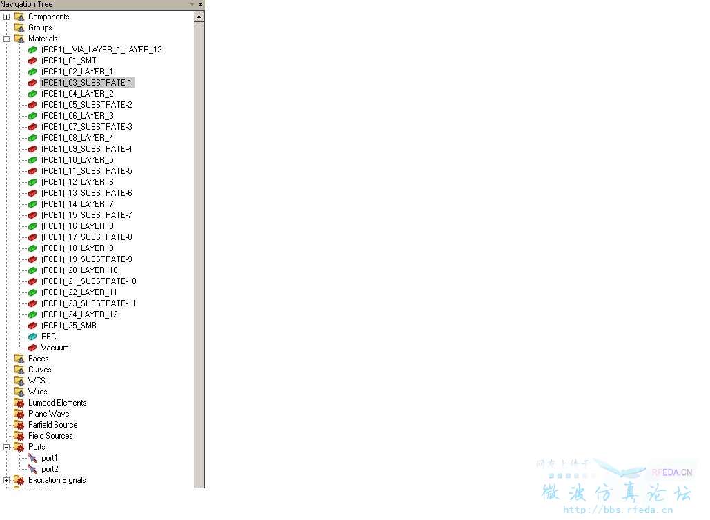 Anyway, I'll try to explain the model: This PCB is made of 12 layers, between each two, there is a substrate layer