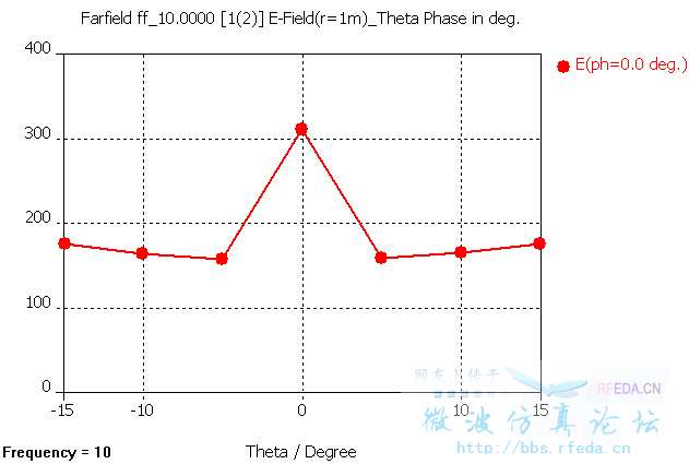 根据仿真结果来看:当把Origin of farfield设置为相位中心的坐标后,Theta分量的E面相位方向图变化很小,而且确实如Help后面所说在Theta=0时有180度突变。但是“Theta分量对应E面相位中心,Phi分量对应H面相位中心”的原因是什么?而且我们要求相位中心,应该是总的电场的相位中心而不应该是某个分量的相位中心,这样的话CST中计算出来的E面、H面相位中心的意义何在?而且通常E面和H面相位中心并不重合,而我们需要的相位中心往往只需要一个,那我们如何选取?