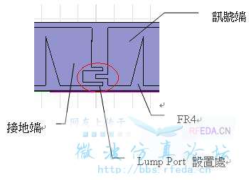 因為之前有試過,直接在"ㄈ"的中間畫一塊平面接到訊號端,來做lump port 但是模擬出來的結果,完全不對,