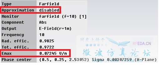 首先,在没有去掉use farfield approximation的钩的时候,检查过E和H的值,应该是对的,E/H=377。
