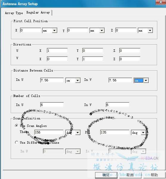 1,在radiation中选择array setup,后面的scan angle是什么意思?