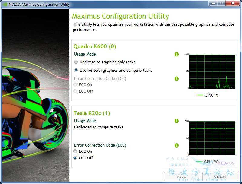 比如我的工作站里,K600打酱油,K20c用到80%。不过看不到温度等等其它信息。