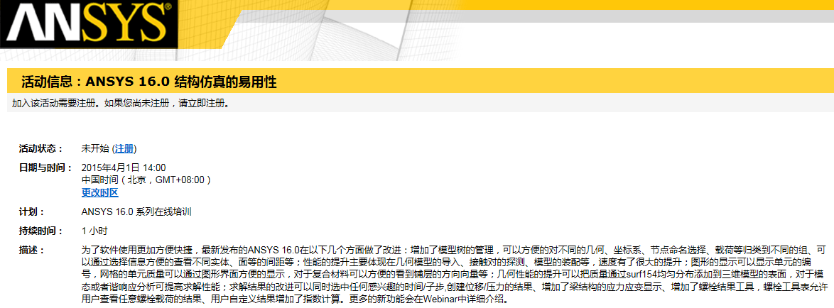本周ANSYS将有三场16.0系列Webinar