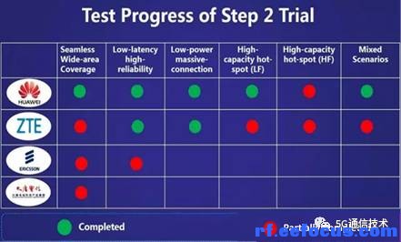 讲座指出,“第二阶段进行了连续广域覆盖的测试,低时延高可靠测试,低功耗大连接的测试,还有低频高频的容量测试,以及混合场景的测试,大家可以看到各个厂家基本的进展情况。虽然没有都完成,但是有几家进展比较快”。