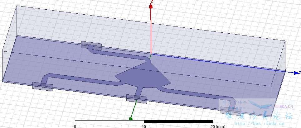 建模的时候半径设为r=sqrt(ws^2+rs^2),暂时得知扇形半径对谐振点影响很大,由于要满足工程需要,尺寸不能再大