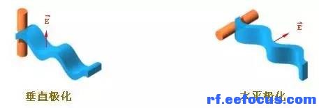 天线向周围空间辐射电磁波。电磁波由电场和磁场构成。人们规定:电场的方向就是天线极化方向。一般使用的天线为单极化的。下图示出了两种基本的单极化的情况:垂直极化---是最常用的;水平极化---也是要被用到的。