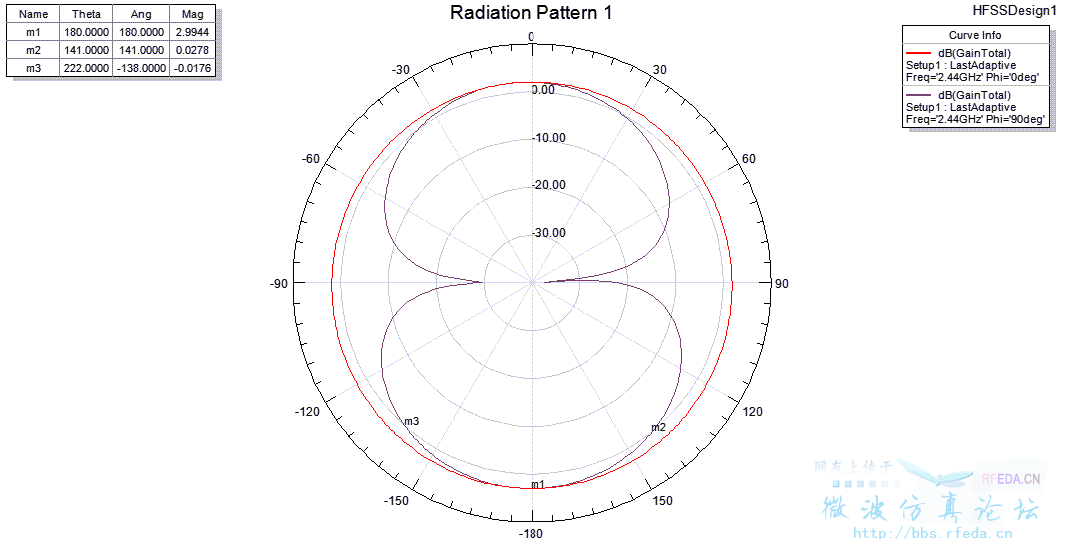 比较几个方向图的全向性,建议先统一标度,然后把关注的几个角度(方向)的Marker全用起来,一目了然而且不那么费眼。小编说是不是?
