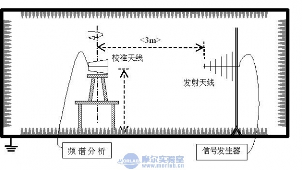 1、 如图所示发射天线连接信号发生器,校准天线连接频谱分析仪;