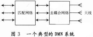 为了提高天线的辐射效率,学者们提出了DMN技术,即在多个天线的输入端先加耦合器以去掉天线之间的耦合,然后加匹配网络,如图3所示。文献对这种方法进行了详细论述,并阐述了用S参数分析正交模的方法。下面对一个二端口网络的天线进行S参数的分析。