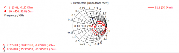 2仿真求解;查看结果S11,史密斯图;至于为什么出现2个谐振,可以查阅相关理论数据;